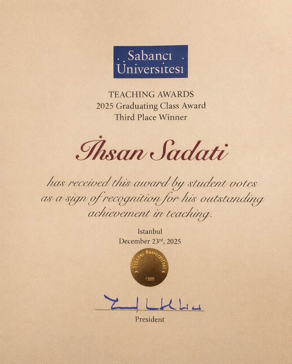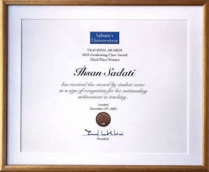 - Sabancı University Teaching Award – Graduating Class of 2025